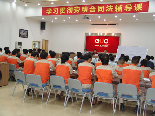 5月9日下午,廣州市國(guó)硯實(shí)業(yè)發(fā)展有限公司、廣州市國(guó)研機(jī)械設(shè)備制造有限公司在總部大會(huì)議廳舉行了聲勢(shì)浩大的學(xué)習(xí)《勞動(dòng)合同法》活動(dòng)。該活動(dòng)由公司黨支部書記、副總經(jīng)理王聲躍主持,廣東注明律師事務(wù)所——廣東德法理律師事務(wù)所、我司常年法律顧問黃文芳主任律師擔(dān)任主講。