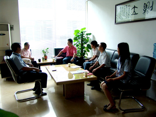 2008年7月17 日,百度(中國)有限公司華南管理委員會(huì)總監(jiān)謝方敏先生攜廣州分公司大部總監(jiān)莫莉娜一行來廣州市國研機(jī)械設(shè)備制造有限公司訪問,公司總經(jīng)理王聲位,副總經(jīng)理、黨支部書記王聲躍及公司信息部負(fù)責(zé)人進(jìn)行了座談。