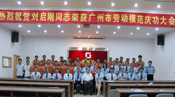 大會在莊嚴(yán)的國歌聲中拉開了序幕。胸戴大紅花,身披綬帶的廣州市勞動模范、國研機(jī)械市場部經(jīng)理劉啟剛同志受到了公司領(lǐng)導(dǎo)和全體員工的熱烈歡迎。董事長兼總經(jīng)理王聲位親自為劉啟剛同志佩戴廣州市委、市政府頒發(fā)的廣州市勞動模范獎狀并頒發(fā)獎金。