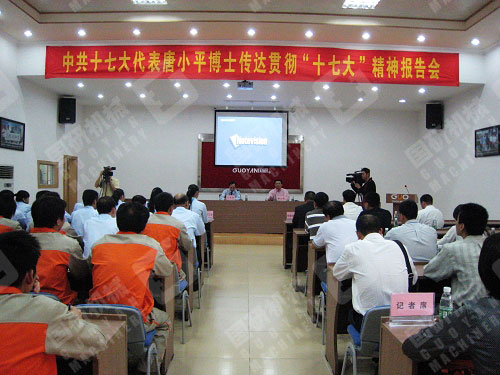 11月14日下午,陽(yáng)光燦爛,秋風(fēng)送爽,在喜慶的鑼鼓和歡聲笑語(yǔ)中,座落于廣州市天河區(qū)珠吉街的廣州市國(guó)研機(jī)械設(shè)備制造有限公司迎來(lái)了黨的十七大代表唐小平博士。唐小平代表面對(duì)國(guó)研公司黨支部全體黨員和公司全體員工,作了一場(chǎng)豐富詳實(shí)、精彩生動(dòng)的報(bào)告。珠吉街黨工委、辦事處領(lǐng)導(dǎo)班子成員、街屬各支部書(shū)記、以及天河區(qū)委組織部、區(qū)委宣傳部的有關(guān)負(fù)責(zé)同志應(yīng)邀出席了報(bào)告會(huì)。