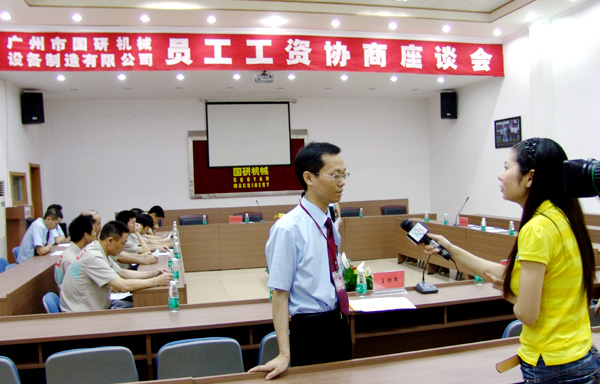 5月14日晚9:30分,中央電視臺(tái)新聞?lì)l道“新聞1+1’ 節(jié)目以《工人工資到底怎么才能漲?》為題重點(diǎn)披露富士康等企業(yè)在工人工資方面存在的種種問題,同時(shí)正面報(bào)道了廣州國研機(jī)械通過建立員工工資集體協(xié)商機(jī)制解決員工工資問題的先進(jìn)經(jīng)驗(yàn)。