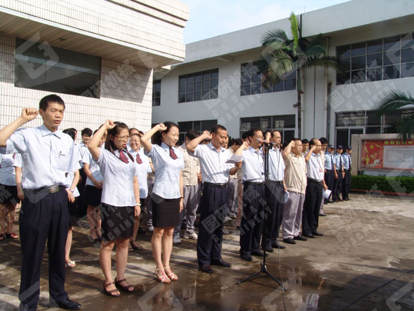 2011年7月1日,國研機械公司園區(qū)內(nèi)彩旗飄揚、鼓樂齊鳴,到處洋溢著一片喜慶氣氛。公司全體員工在黨支部的組織和工會、團支部的協(xié)助下,以升國旗、重溫入黨誓詞、參觀虎門愛國主義教育基地等形式熱烈慶祝中國共產(chǎn)黨誕辰九十周年。